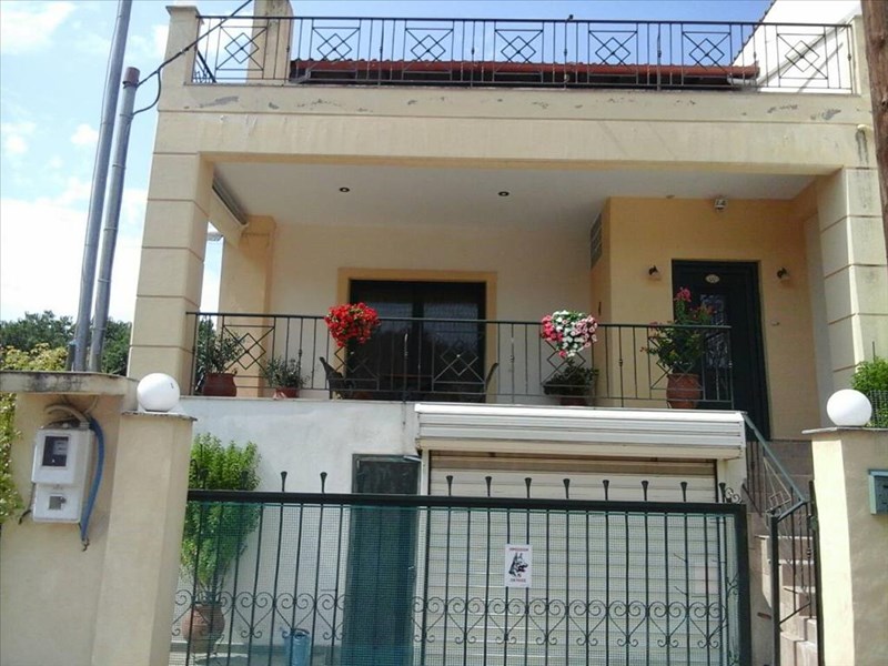 For sale 3-storey house of 248 sq.meters in the suburbs of Thessaloniki. The ground floor consists of 2 bedrooms, living room with kitchen, one bathroom, one storeroom. The first floor consists of living room, one kitchen, one WC. The second floor consists of 3 bedrooms, one bathroom, one dressing room. A magnificent view of the city, the forest opens up from the windows. There are solar panels for water heating and a fireplace. Extras included with the property: parking space, garden.