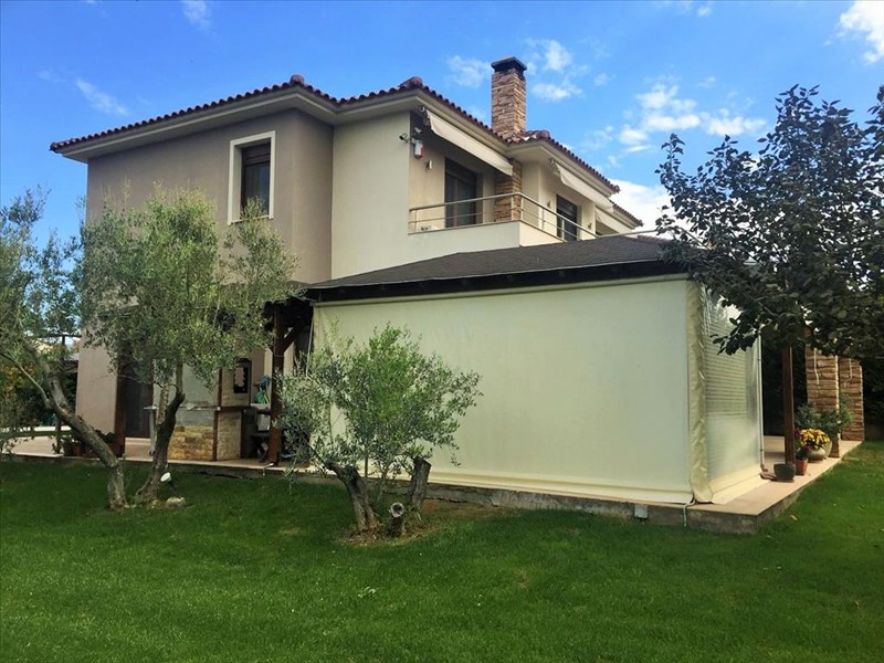 For sale 2-storey house of 210 sq.meters in the suburbs of Thessaloniki. The ground floor consists of one bedroom, living room, one kitchen, one shower WC, one storeroom. The first floor consists of 3 bedrooms, 2 bathrooms. A view of the mountain, the forest opens up from the windows. There is a fireplace, air conditioning, awnings, heating and a barbecue area. The owners will be leaving the furniture with the sale. There is an alarm system installed. Extras included with the property: parking space, garden.