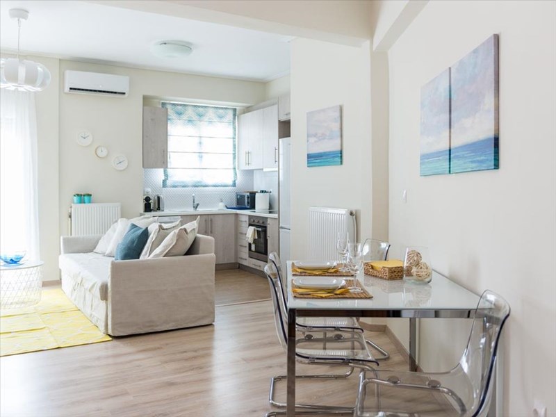 For rent apartment of 67 sq.meters in Athens. The apartment is situated on the 5th floor. It consists of 2 bedrooms, living room, one kitchen, one bathroom. Flat has front layout. A magnificent view of the city, the mountain opens up from the windows. There is air conditioning and heating. The owners will be leaving the furniture with the sale. Building has a lift. The flat is located in Metaksourgeio area , 450 m far from the metro station