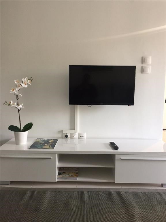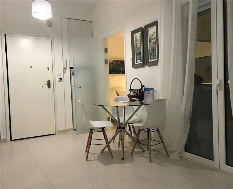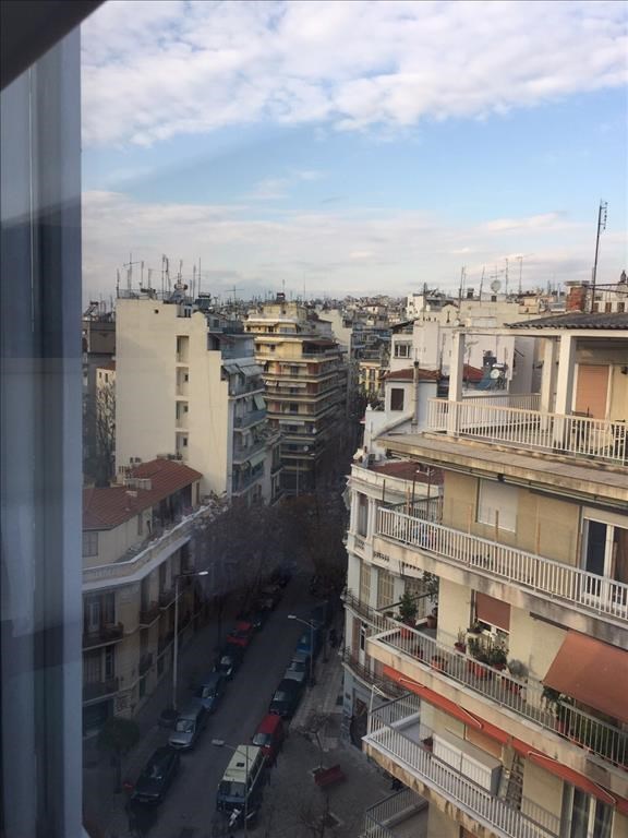 For rent apartment of 48 sq.meters in Thessaloniki. The apartment is situated on the 8th floor. It consists of one bedroom, living room with kitchen, one bathroom. Flat has front layout. A magnificent view of the city opens up from the windows. There are solar panels for water heating, air conditioning and awnings. The owners will be leaving the furniture with the sale. Building has a lift.