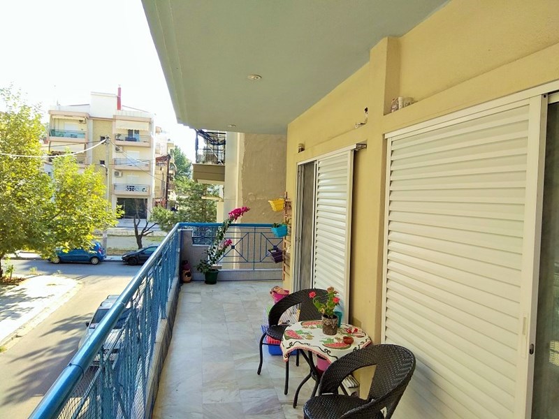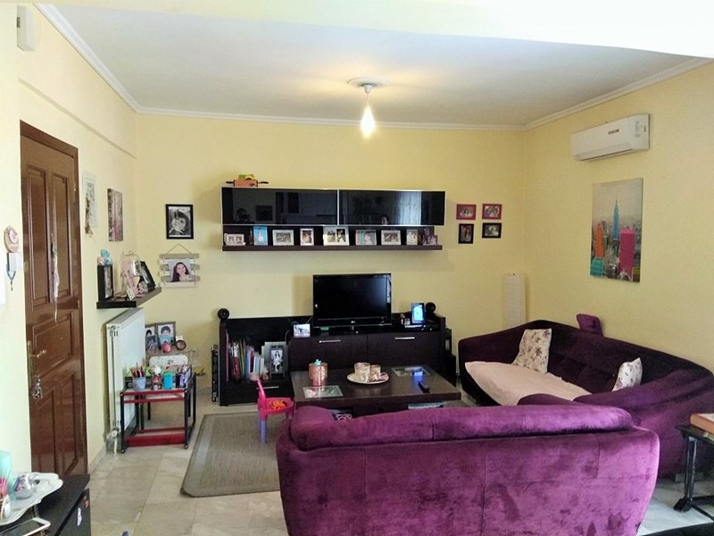 For sale apartment of 72 sq.meters in Thessaloniki. The apartment is situated on the 1st floor. It consists of 2 bedrooms, living room with kitchen, one bathroom. Flat has double-frontage layout. There is air conditioning and heating. Building has a lift. Extras included with the property: parking space.