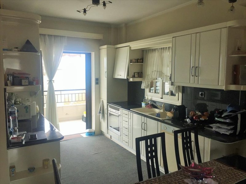 For sale apartment of 103 sq.meters in Thessaloniki. The apartment is situated on the 5th floor. It consists of 3 bedrooms, living room with kitchen, one bathroom, one WC. Flat has front layout. A magnificent view of the city, the sea, the mountain, the forest opens up from the windows. There is a fireplace, air conditioning, awnings and heating. Building has a lift. Extras included with the property: parking space.