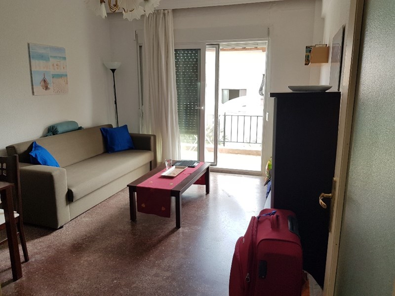 For sale apartment of 55 sq.meters in Kassandra, Chalkidiki. The apartment is situated on the 2nd floor. It consists of one bedroom, living room with kitchen, one bathroom. Flat has interior layout. There are awnings and heating. The owners will be leaving the furniture with the sale.