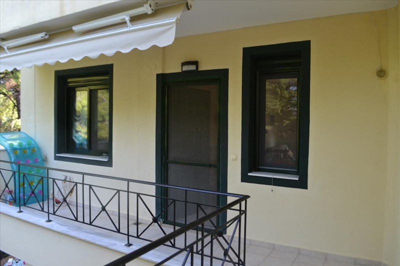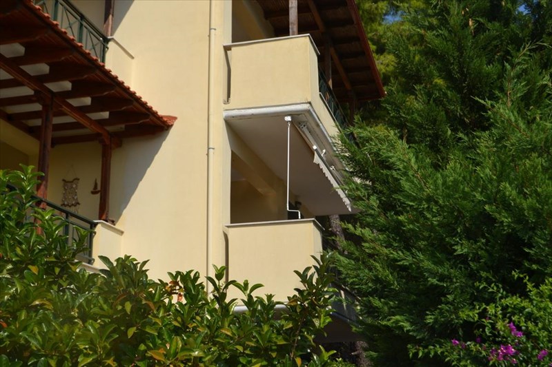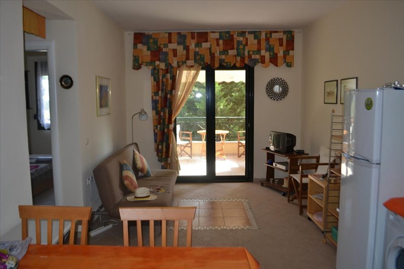 For sale apartment of 58 sq.meters in Kassandra, Chalkidiki. The apartment is situated on the 1st floor. It consists of 2 bedrooms, living room with kitchen, one shower WC. Flat has interior layout. There are awnings. The owners will be leaving the furniture with the sale. Extras included with the property: parking space.
